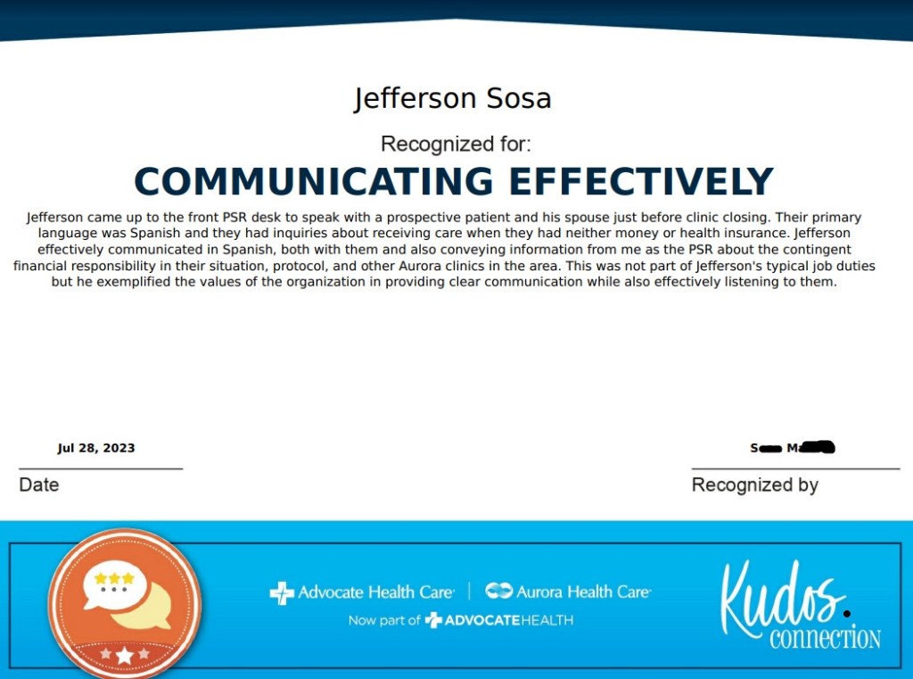 After my first year of schooling was completed, in 2021, I was fortunate enough to find a job as a Medical Assistant at Sixteenth Street Community Clinic where we help struggling families get access to healthcare. Rooming patients, taking vitals, taking down their chief complaint and administering medication were some my main day-to-day responsibilities, but I also provided interpretation services for those families whose primary language is only Spanish. During my first week on the floor, I had to interpret a difficult case for a provider, the interaction I was able to observe between the provider and patient helped solidify my career choice.